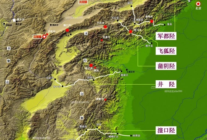 太行山八陉分布示意图